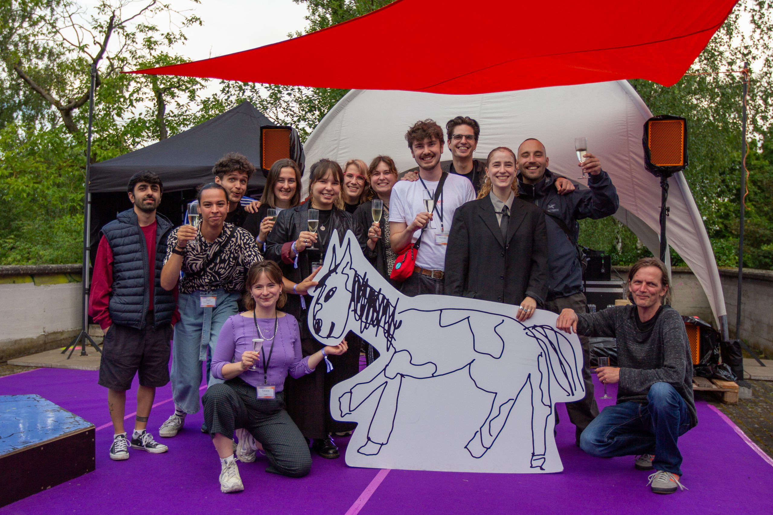 Während des gesamten Festivals gab es ein kontinuierliches Programm auf unserem Festivalcampus, das eine Siebdruck- und Laserdruck-Werkstatt sowie eine Festival-Lounge für den Austausch umfasste. In den Abendstunden fand die Festival-Kneipe statt, die Raum für Gespräche und das Knüpfen von Kontakten bot. Zudem wurden an allen Tagen Nachgespräche zu den Stücken des Vortages angeboten, die den Austausch und die Reflexion über die gesehenen Performances förderten.