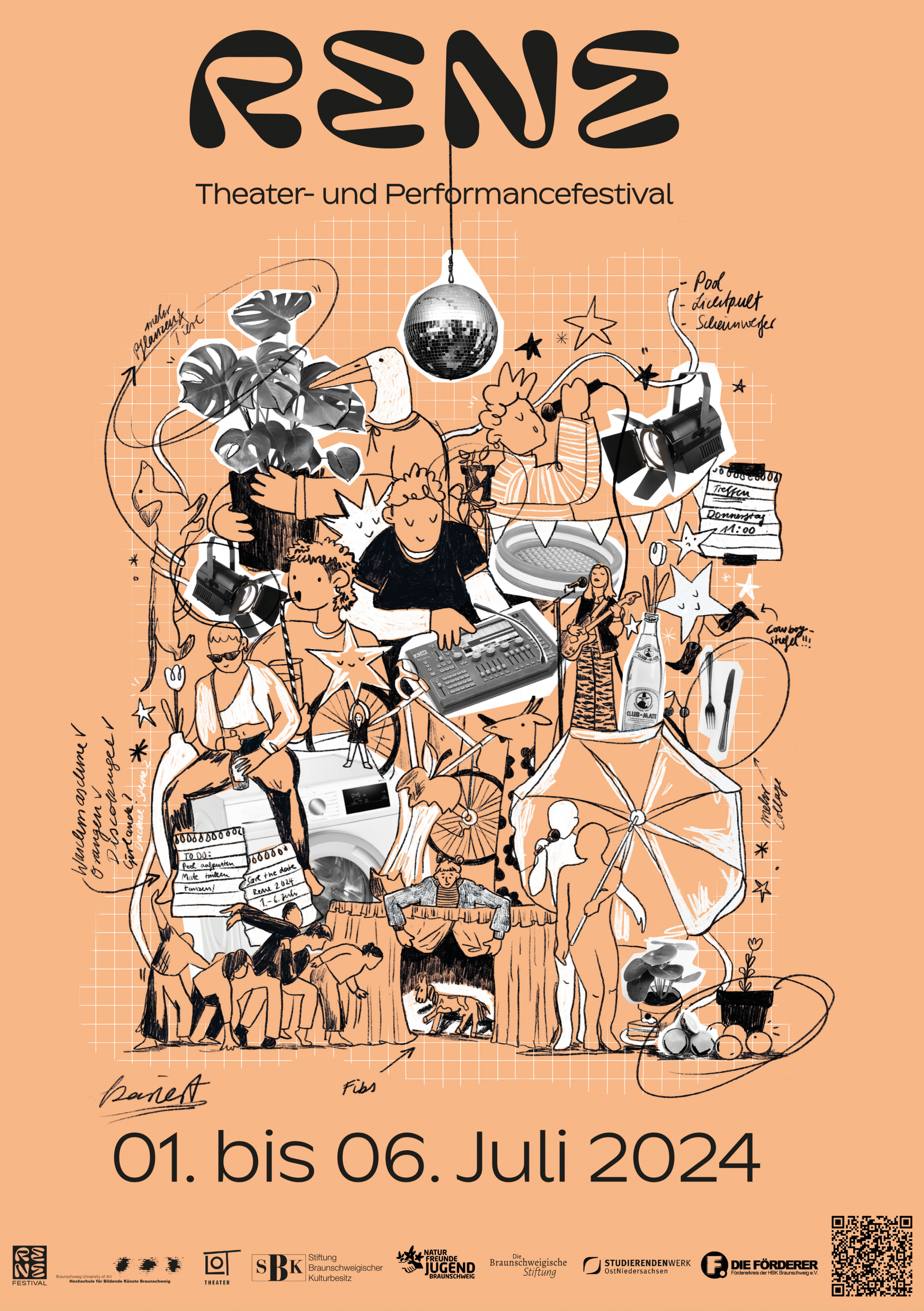 Das Programm des RENE Festivals 24 setzte sich aus einer Mischung von künstlerischen und diskursiven Formaten zusammen. 7 Kollektive, 2 Einzelkünstlerinnen, 3 Bands und 3 DJs boten an 5 Festivaltagen ein Programm, welches an 3 Spielorten stattfand und ein breites Spektrum an Inhalten abdeckte.